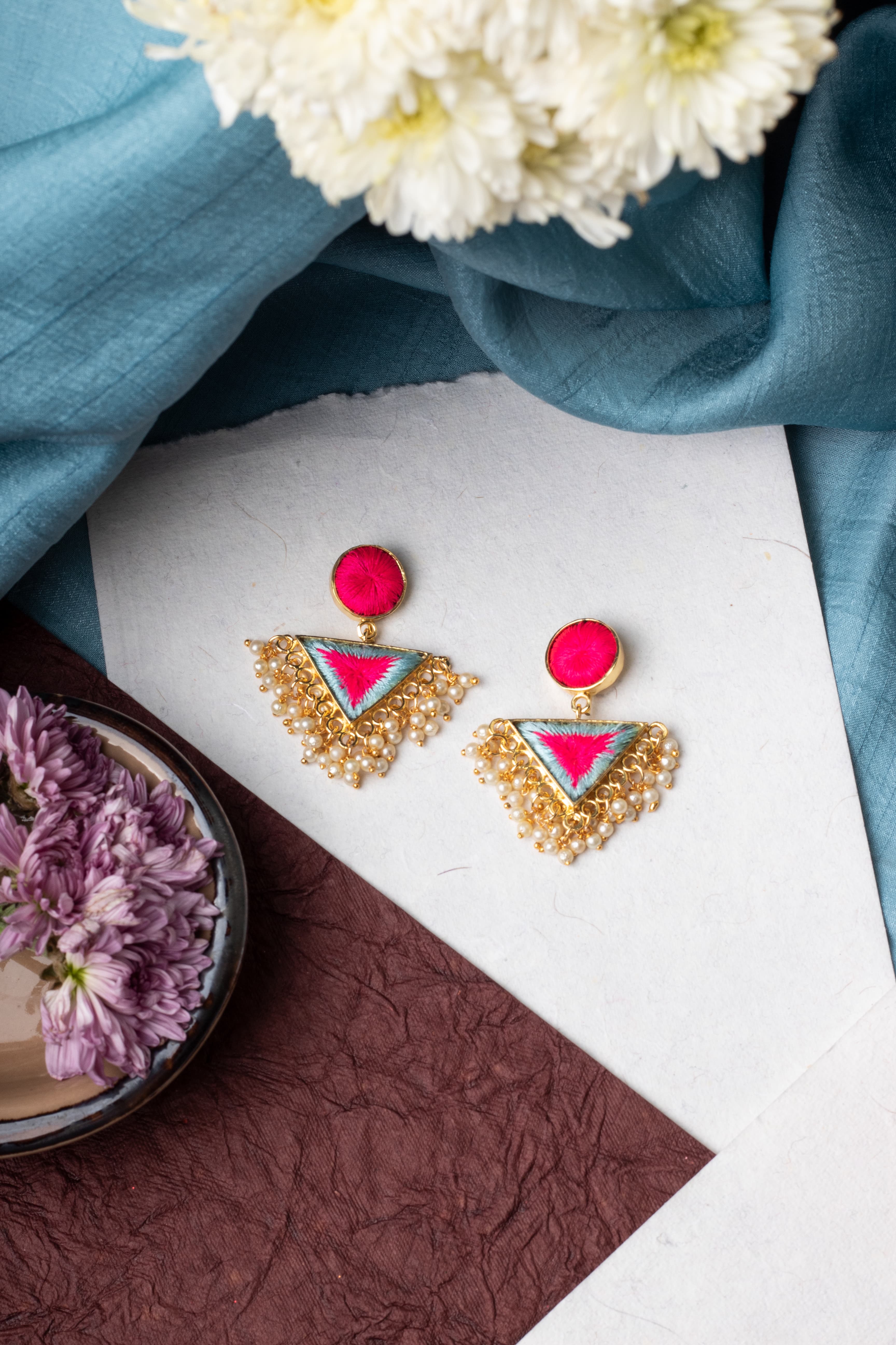 - Design Inspiration : Our collection is inspired by the vibrant beauty of Indian wedding celebrations — from the sunlit joy of Haldi to the rich traditions of Mehndi and the musical spirit of Sangeet. Each piece is handwoven using silk threads and set on brass, blending heritage craftsmanship with contemporary aesthetics. The color palette — a thoughtful mix of hot pink, mustard yellow and soft pastels — reflects the joyful energy, floral décor, and elegance of festive Indian occasions. Drawing from traditional motifs like marigolds, paisleys, and mandalas, and reinterpreting them in modern silhouettes, our jewelry is designed to be both statement-worthy and lightweight, making it perfect for pre-wedding events and gifting. Rooted in tradition, yet created for the modern celebration, our embroidered jewelry offers a one-of-a-kind wearable art experience — joyful, handcrafted, and full of meaning.