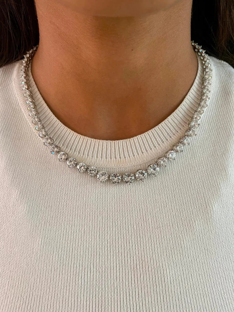 Diamond Single Layer Tennis Necklace Set (Necklace & Earrings)